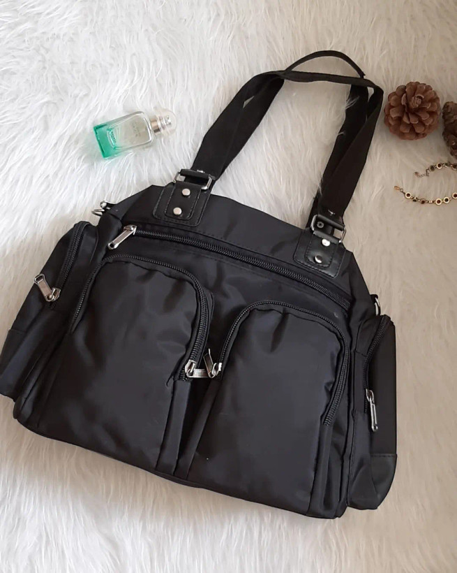 دارای سه جیب روی کیف دو جیب در بغل و یک جیب در پشت کیف