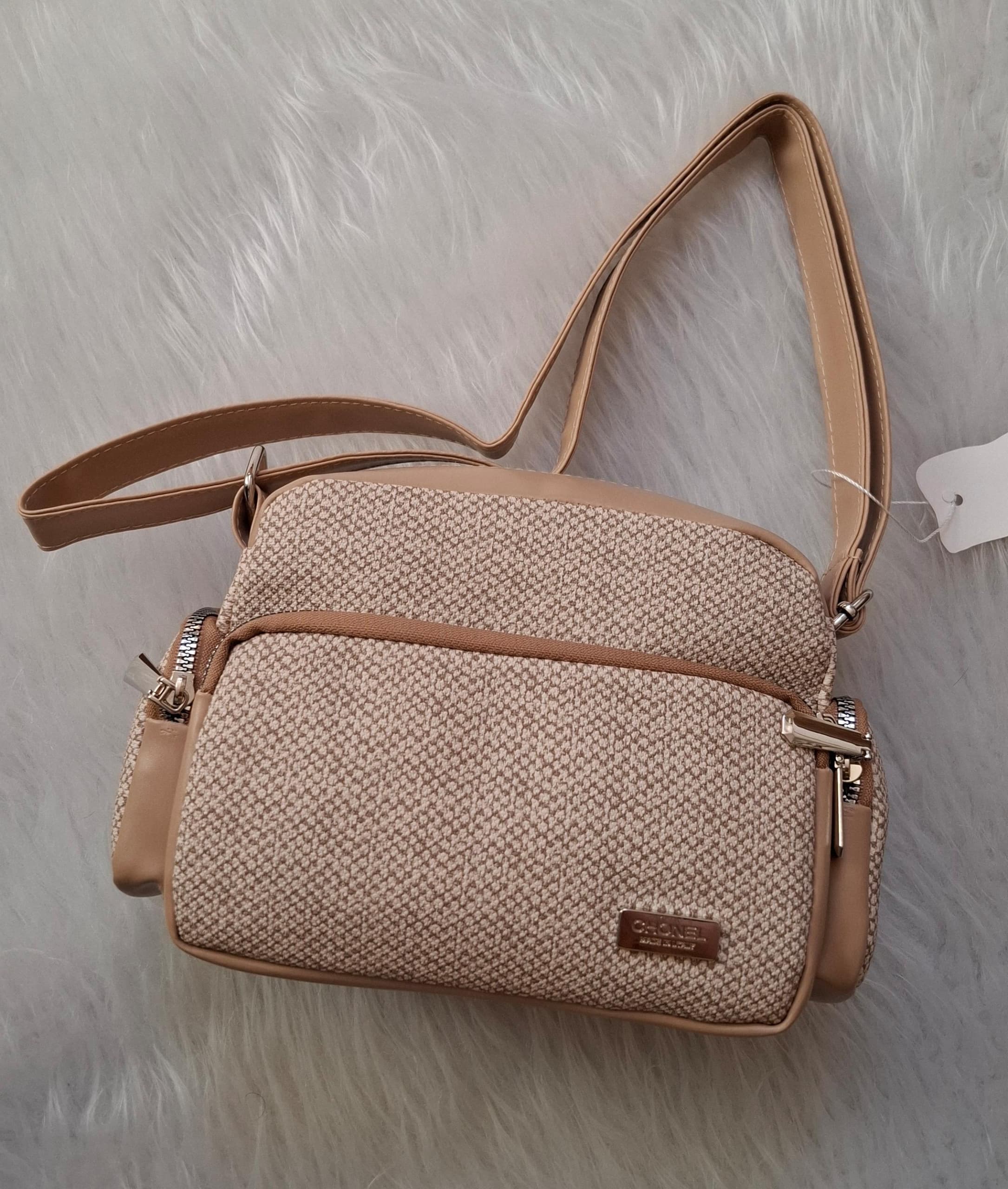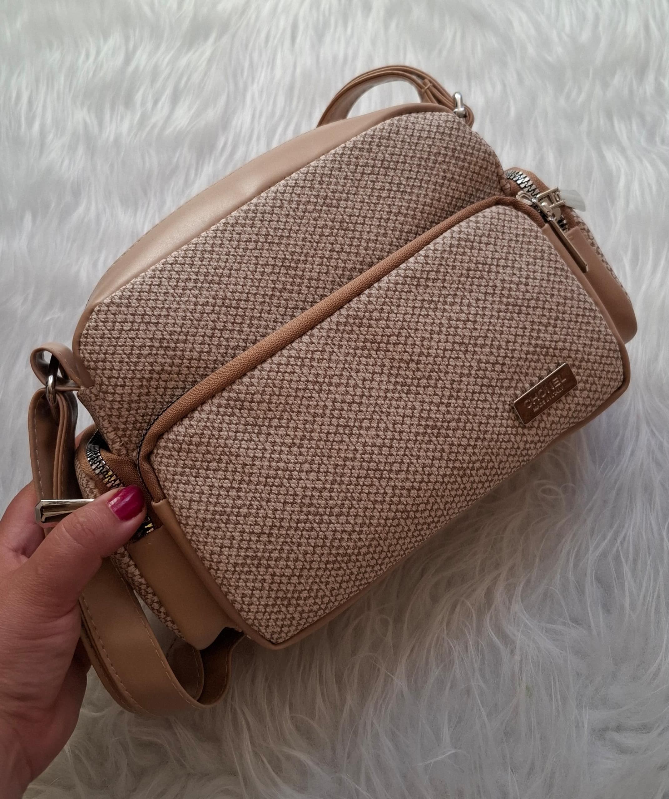 این کیف دوستداشتنی با طراحی خاص و جمعوجور، انتخابی عالی برای همراهی در استایل روزمره و حتی مهمانیهای ساده است. رنگ خنثی و جنس کنفی آن باعث میشود به راحتی با هر لباسی ست شود. بغلجیبهای کاربردی هم فضای مناسبی برای وسایل کوچک و دمدستی شما فراهم میکند.